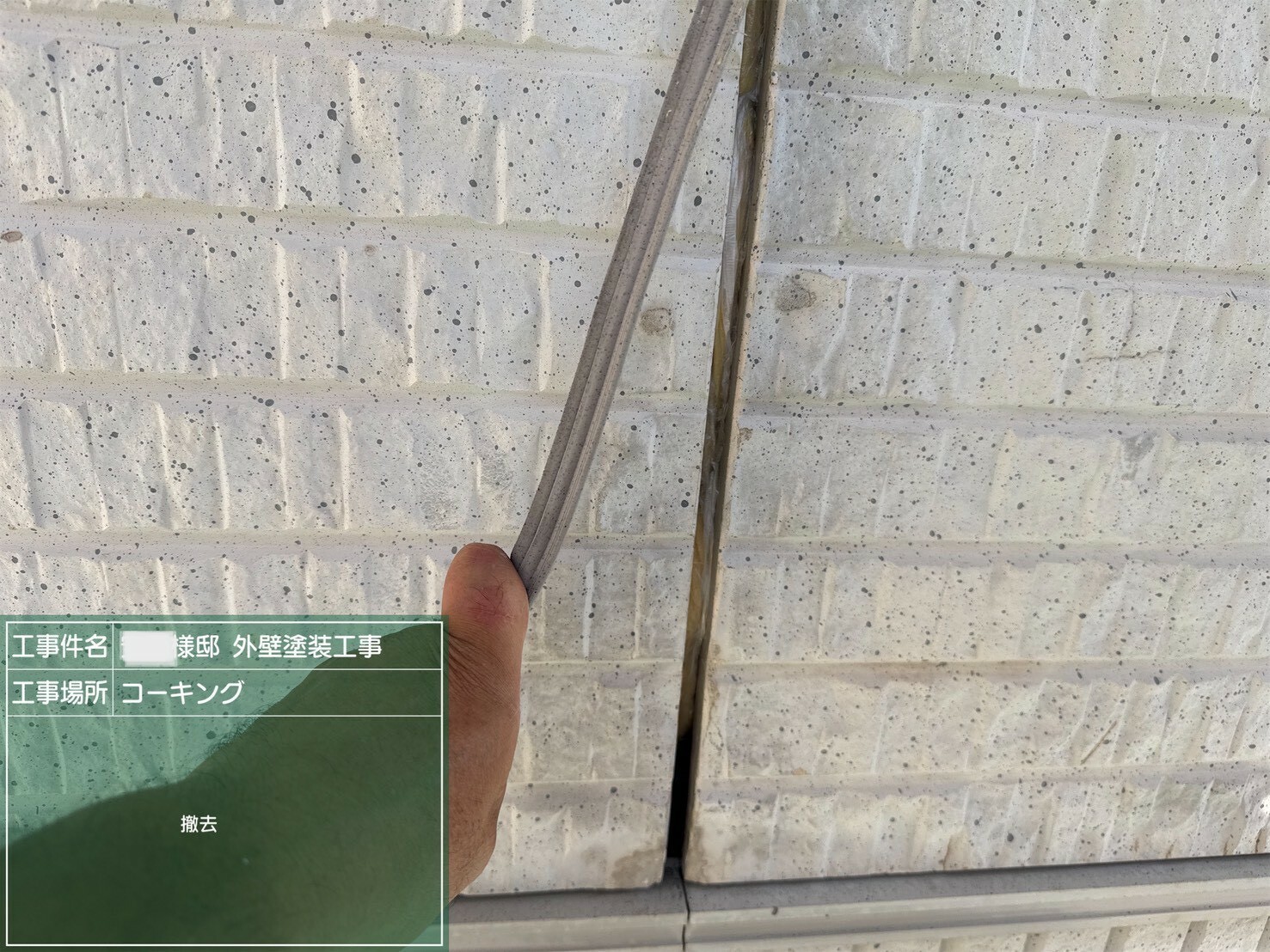 外壁のコーキング打ち替え工事です。外壁の目地にはおおよそコーキング材(シーリング材)が充填してあります。防水性を高め、建物の揺れに対する緩衝材の役割となります。目地の劣化は雨漏りや建物の破損に繋がる為、5~10年を目安に定期的なメンテナンスが必要です。