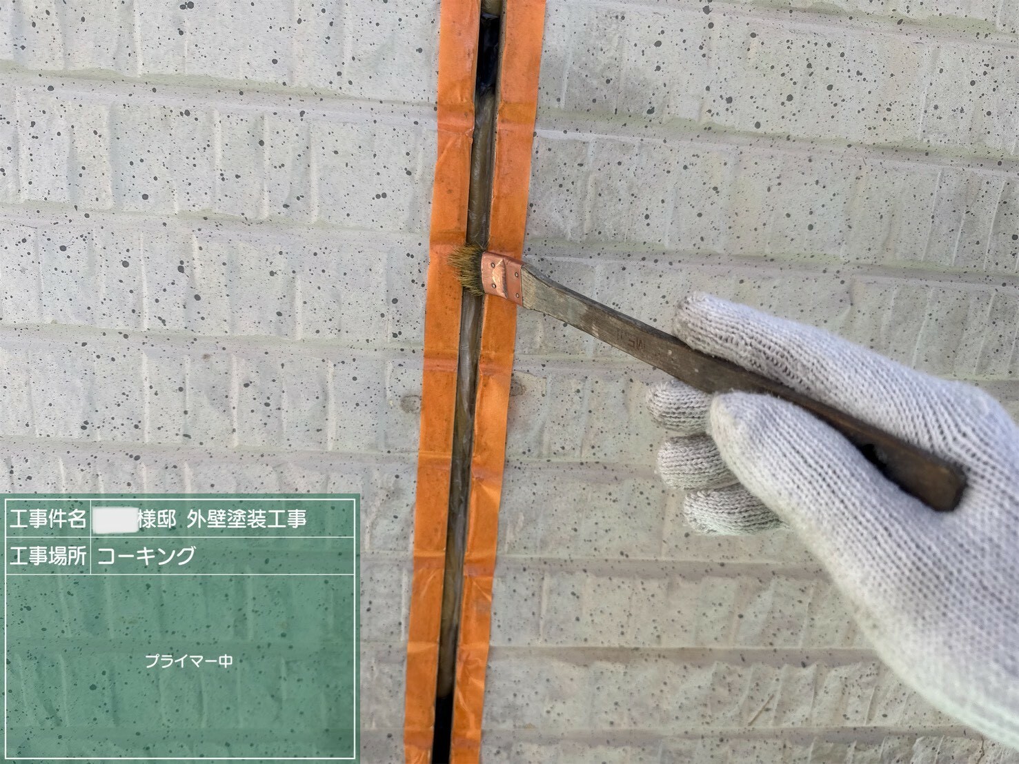 養生テープで外壁を覆ってからプライマーを塗布します。