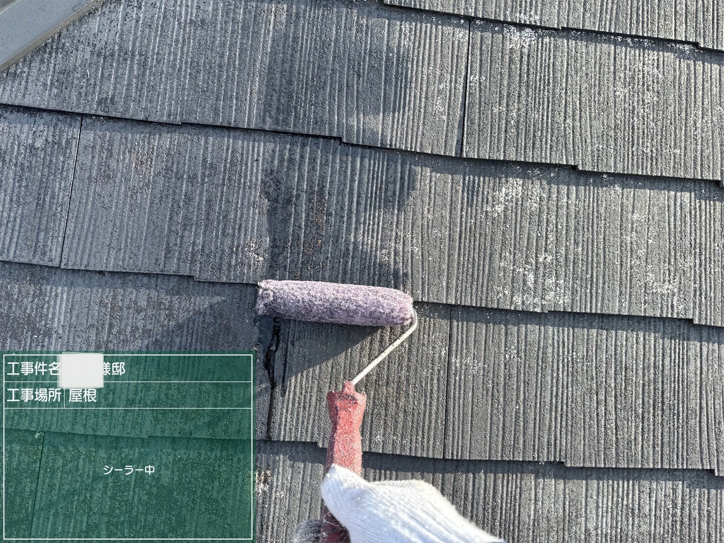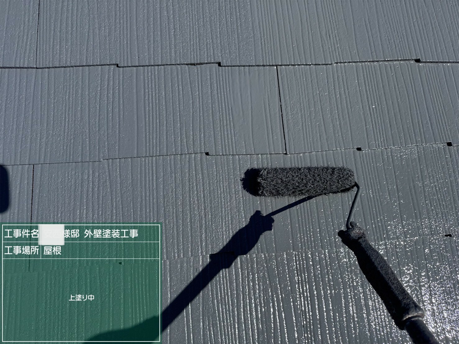 屋根塗装工事の一例です。屋根材を雨・風・太陽熱から保護し、建物の劣化を防ぐ為の大事なメンテナンス工事です。見た目が美しくなるのはもちろんですが、防水性や耐久性を高めて雨漏りを防止したり、遮熱・断熱効果が上がることによって冷暖房費を抑えるメリットがあります。