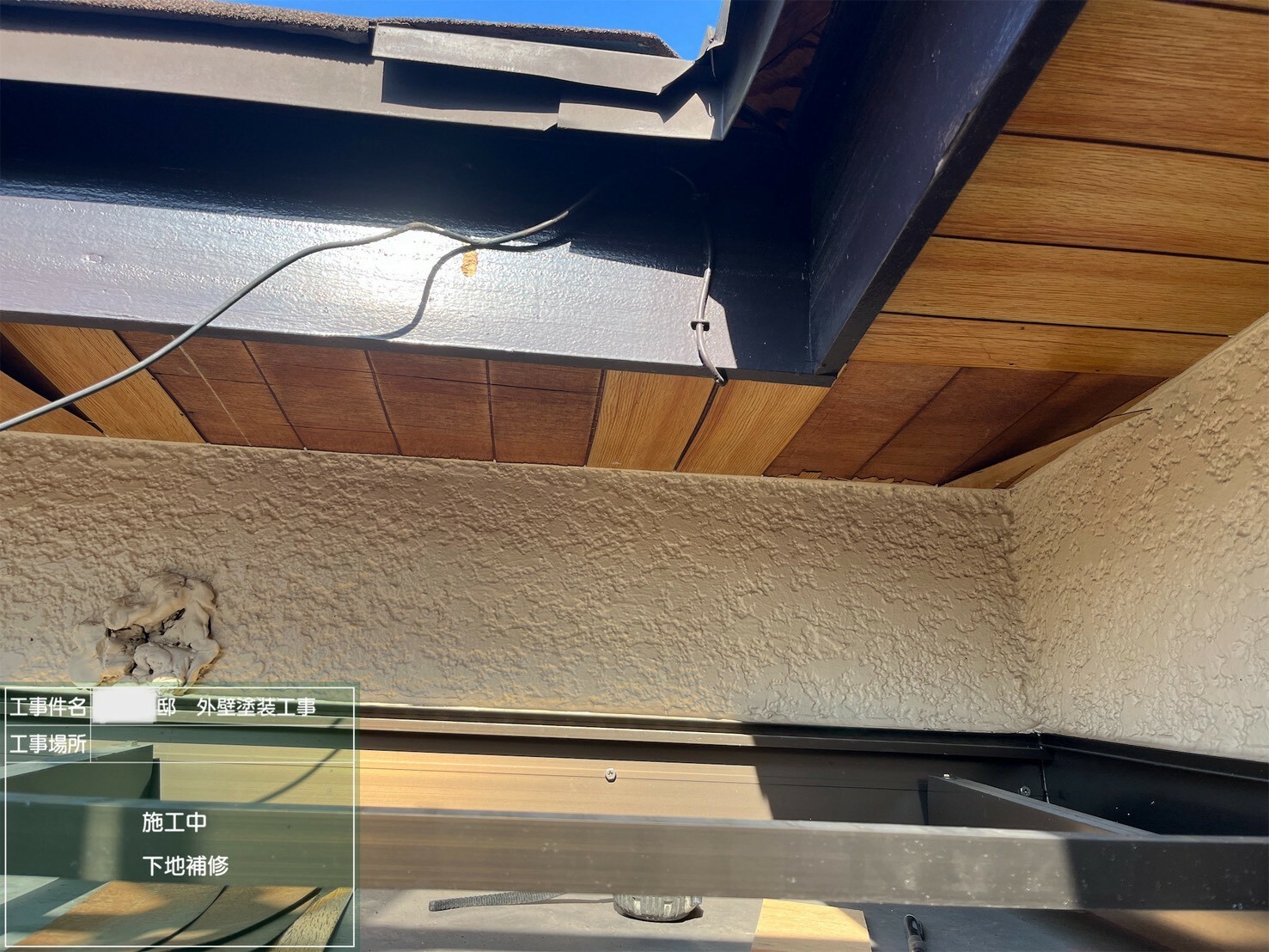 軒裏天井の木部分が雨水・風・日焼けなどによってところどころ剥がれていました。雨漏りの原因となったり、鳥獣の住処とすることもあるので長年使う場合にはメンテナンスが必要不可欠です。波板も張替えて美しく仕上がりました。
